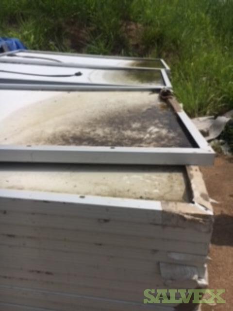 | Condition | : | A portoin of panels arrived physically damaged (glass broken) due to rough transit conditions ground transportation. Most panels approx. 95% seem in sound condition. Please see photos attached for an idea of current condition. Sellers, do not bind themselves to accept the highest or any offer. Buyer, is responsible for any off loading and/or handling fees. Buyer, must verify quality before removing lot from the location. |