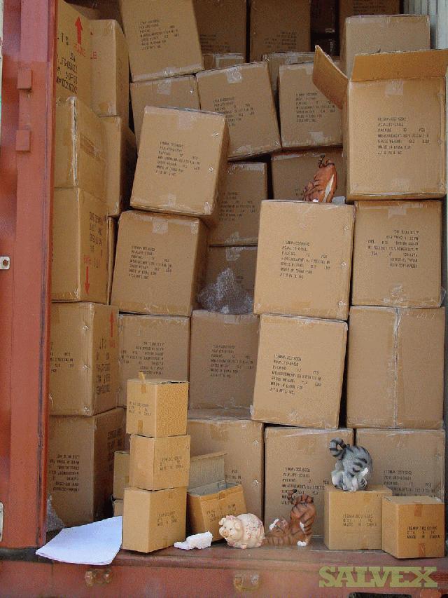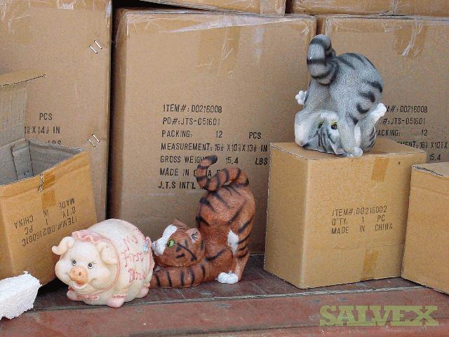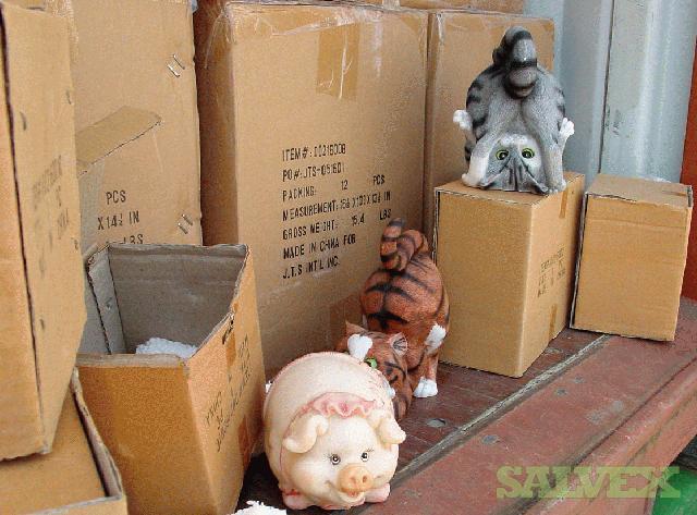 | Condition | : | This lot contains mostly Polyresin/Polystone Animal Banks of different sizes. These retail goods were abandoned. We were informed that there are 1133 Total Cases of merchandise. The count cannot be verified. We do not have a complete breakdown of type of goods. We were able to inspect the items listed below. The other items inside the container were unavailable for viewing are also Polystone products (probably other animal type banks) They were made by JTS International. Goods are being stored in a 40’ Container. Container is FULL. |