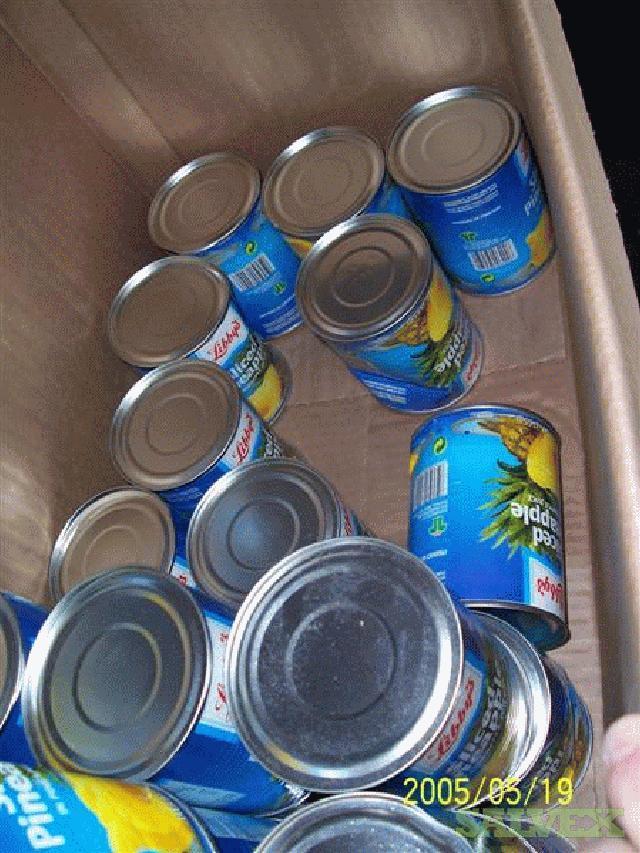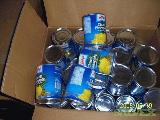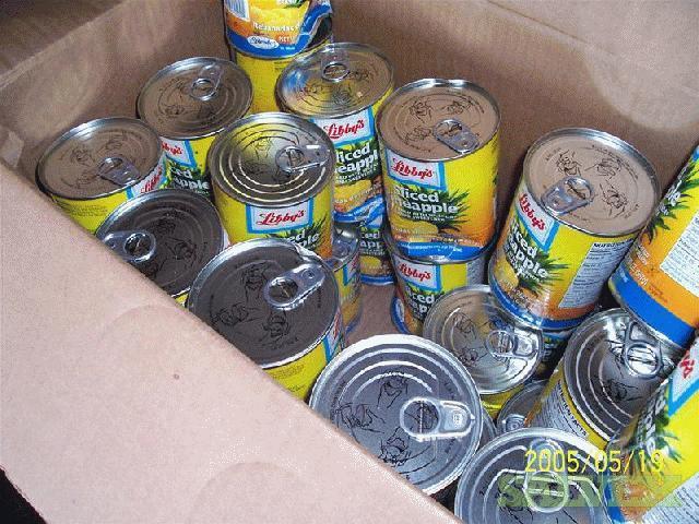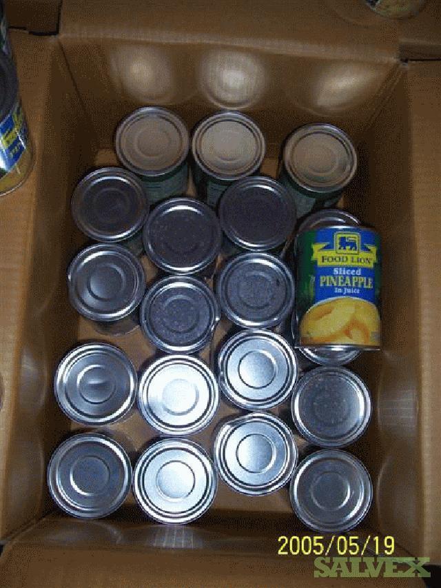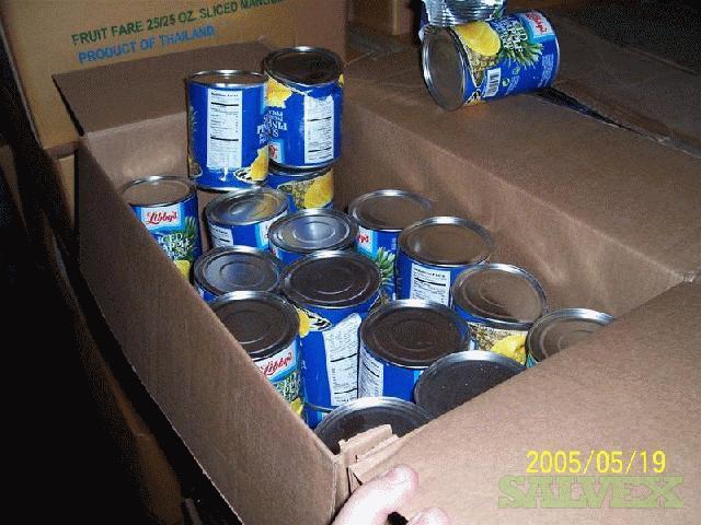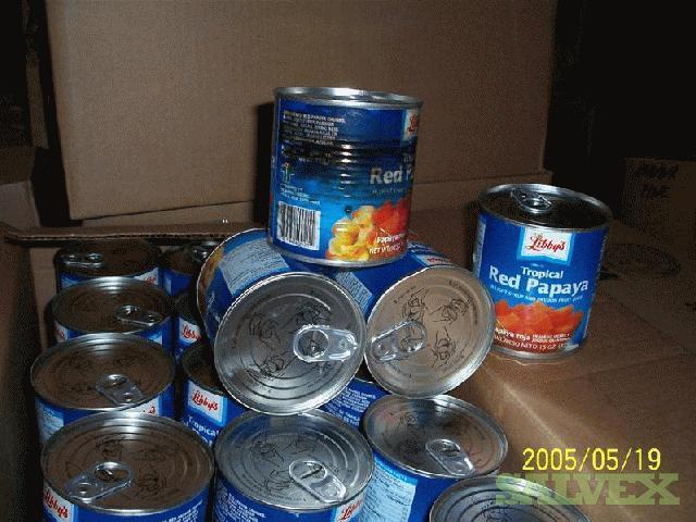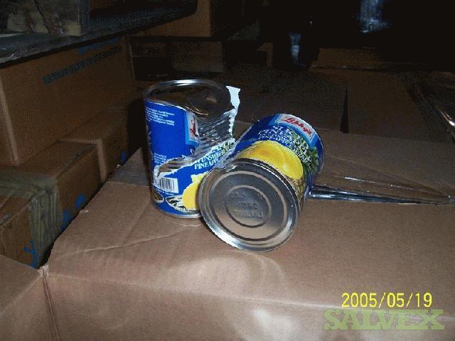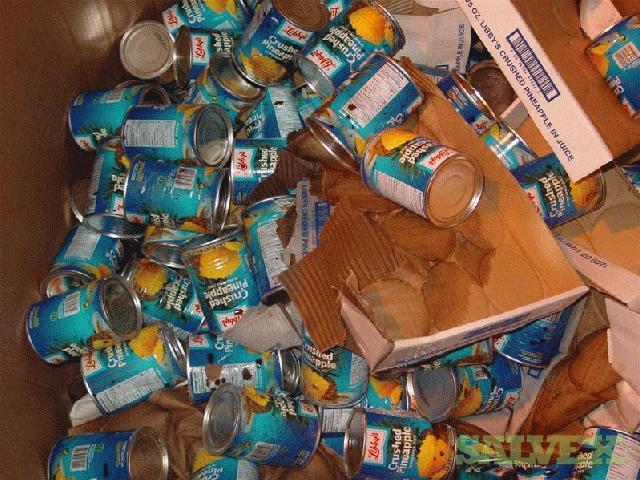 | Condition | : | This material was transferred from several other warehouses throughout the country and consolidated. The damaged tins were segregated at time of receipt. Originally the material came from Thailand. The material is mostly Libby''''s but there are some house brands in the lot also, i. e., Food Lion. They were packed in generic boxes and palletized. From inspections, it appeared most of the bigger dents were in the side. All leaking tins have been removed but there may be some tins with stained labels |