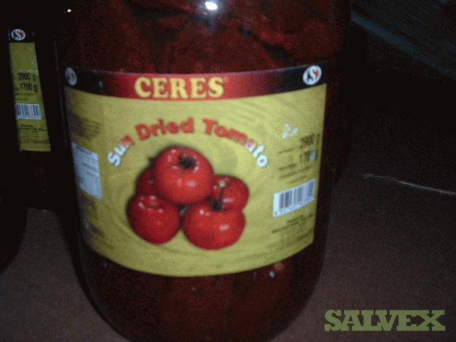 | 15 boxes | Sun Dried Tomatoes with Sulphur ½ cut in Olive Oil 3000cc Jar (Net371.25) |