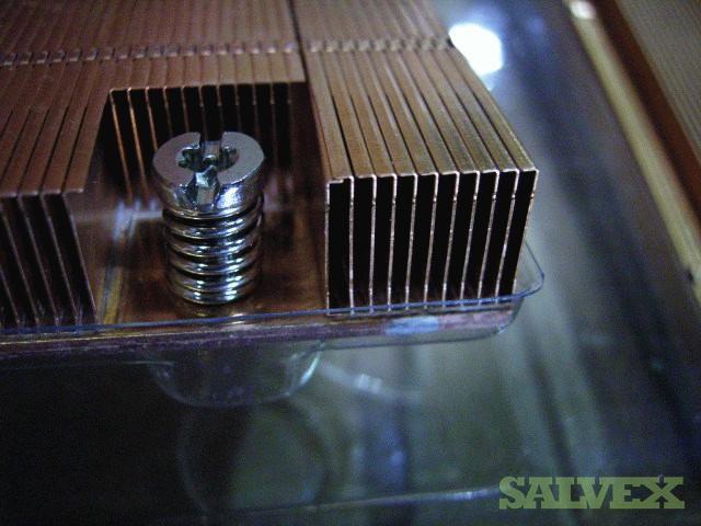| Condition | : | Physical damage due to shifting. Heat Sinks have cooling fins bent/gouged and or separated to varying degrees. Sinks have some solder material as well as 4 screws and conducting paste. |