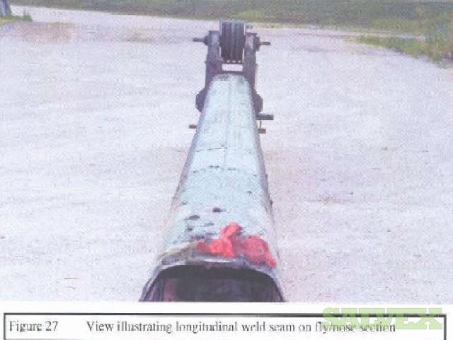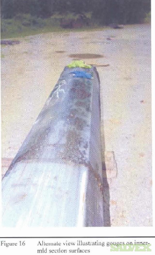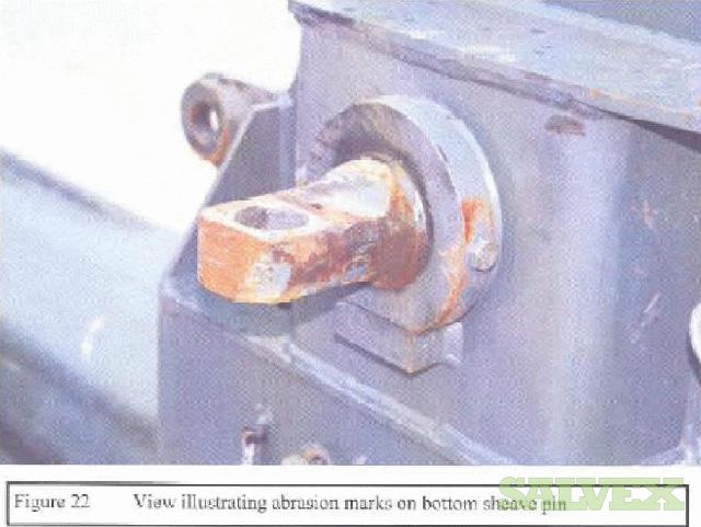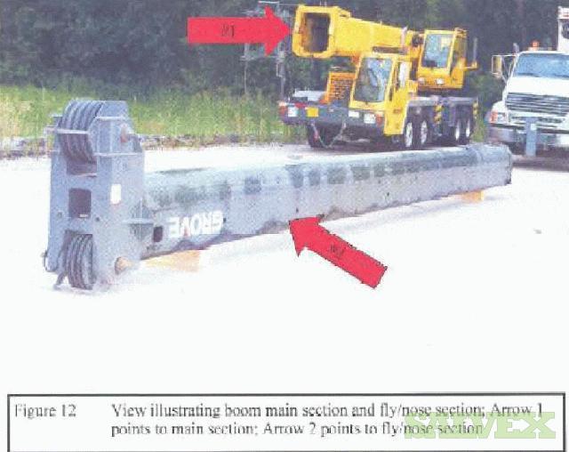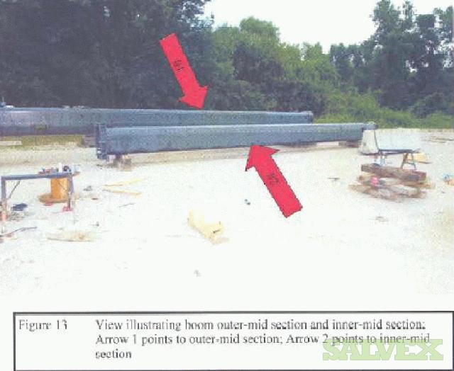 | Condition | : | Some gouges on inner-mid section surface and dents that transcended into inside surface of the inner-mid section. Abrasion marks on bottom and top of sheave pin. Deformation of fly/jib support tube revealed cracks in the weld area. Engineering report states not suitable for the purpose in which it was designed. |