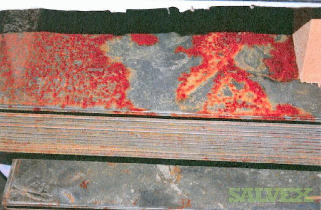 | Condition | : | According to the seller, these sheets were rejected upon arrival due to water damage. An inspector found that all sheets showed slight to extensive rust damage on the surfaces, sides and end edges of the steel sheets. Water was present on the surfaces and the packing materials of the shipment. The corner posts protecting the sides and edges were saturated with water between the units and the posts. |
