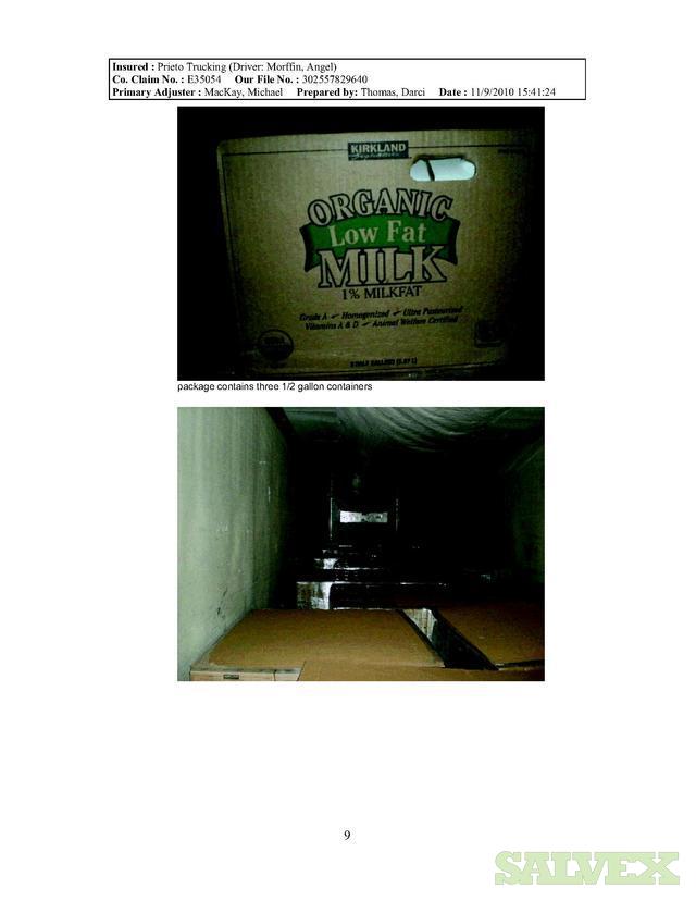 This load of Organic 1% Milk is availble for salvage due to trucking issues and is being sold by the insurance company to recover funds.