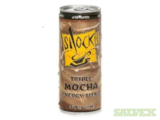 This lot of Shock Coffee Drinks is considered surplus inventory and is being sold by the company to recover storage space and funds.