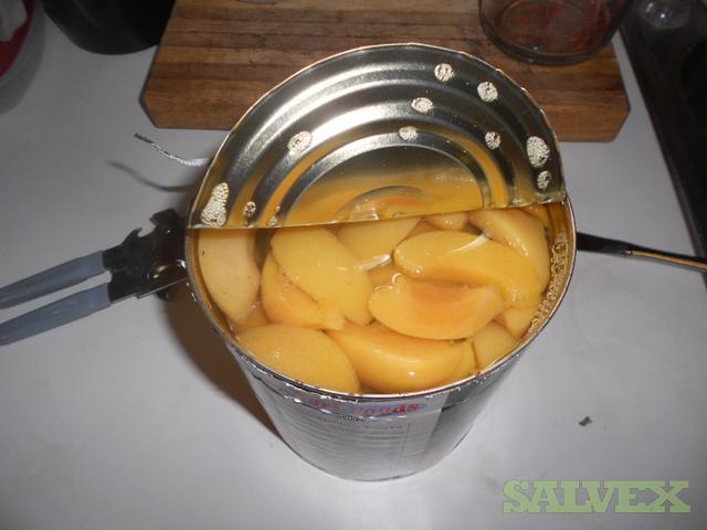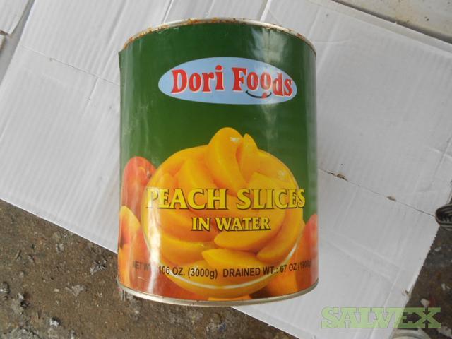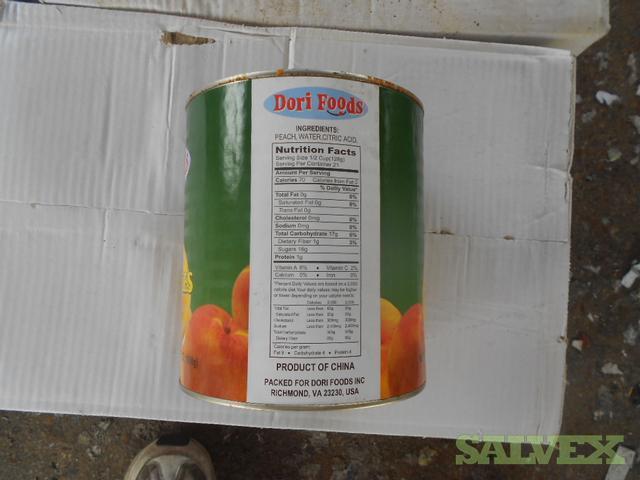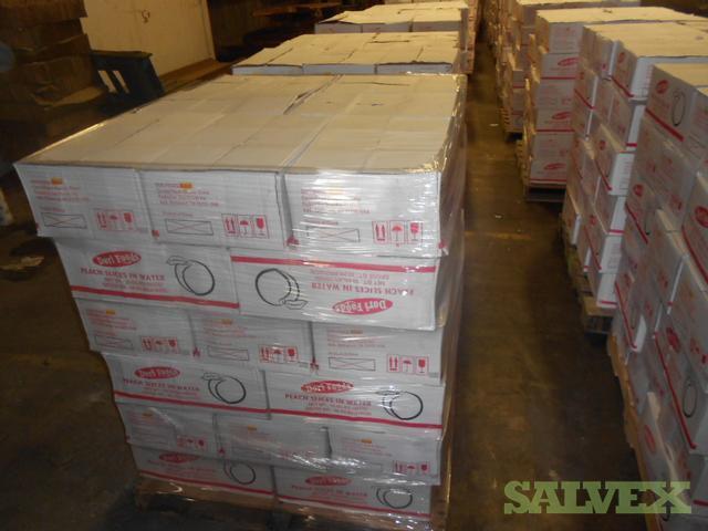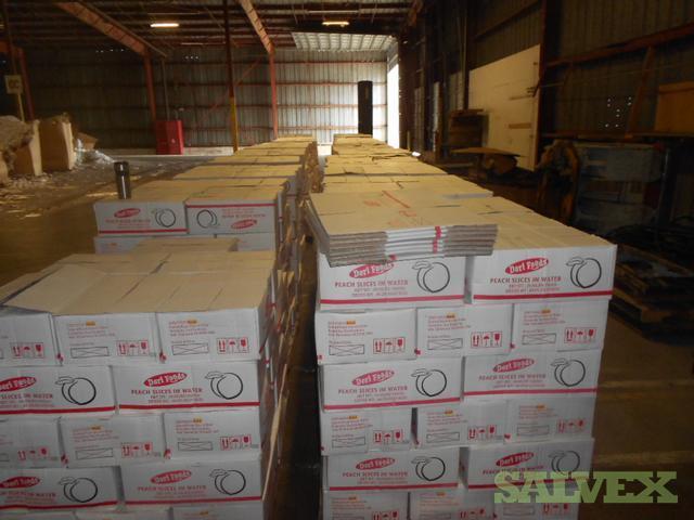 This lot of Canned Peach Slices in Water was abandoned by the consignee and is being sold by the shipping company to recover costs and storage space.