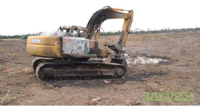 This 2005 John Deere 270C LC Excavator was damaged by fire and was part of an insurance claim which has been settled. The item is being sold by the insurance company to recover costs against the claim.