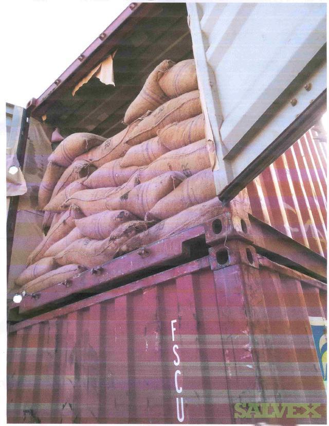| Condition | : | On May 9th, 2013 the cocoa beans were surveyed and found to have a high level of moisture, apparently due to condensation. Bags were found externally water stained, torn and content exposed. Based on the observations during survey, they could observe the content with fungus formation. Please see attached for depiction of extent of damage. |
