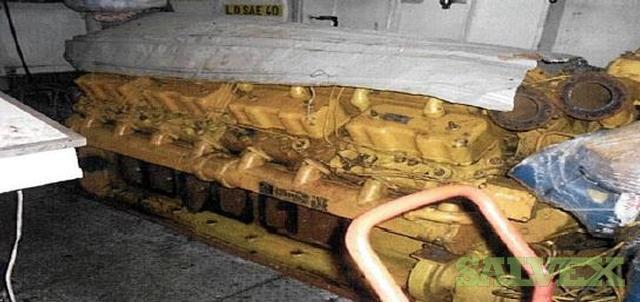 This Marine Engine Caterpillar, Model D399, Serial 35B06449 is being sold by a company as part of a claim to recover funds and storage space.