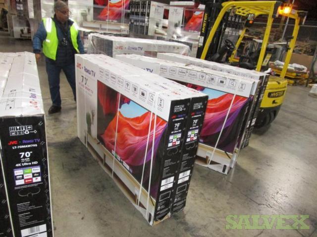 This lot of 70 '' JVC LED Roku TV was involved in an insurance claim and is being sold by the insurance company to recover funds from loss.