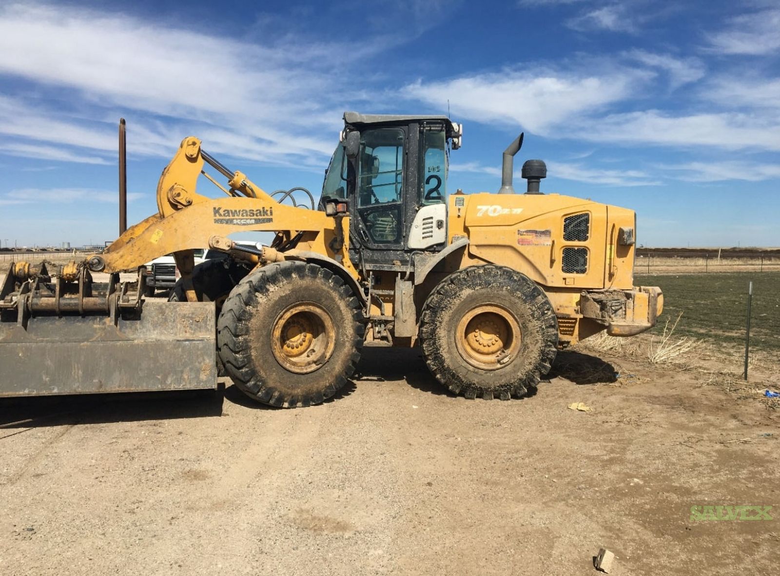 This 2014 Kawasaki 70Z7 Rubber Tire Loader was involved in an insurance claim and is being sold by the insurance company to recover funds from loss.