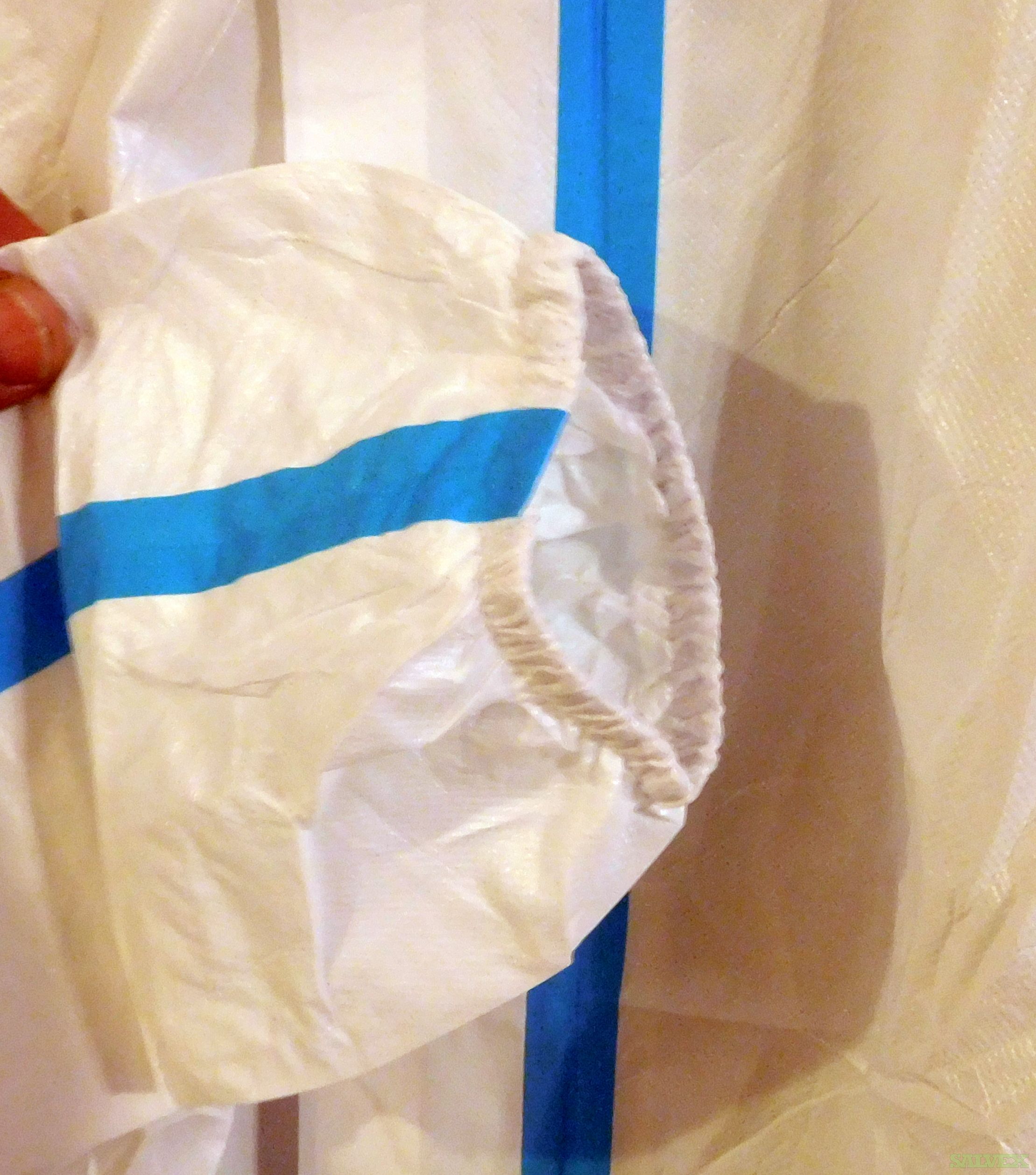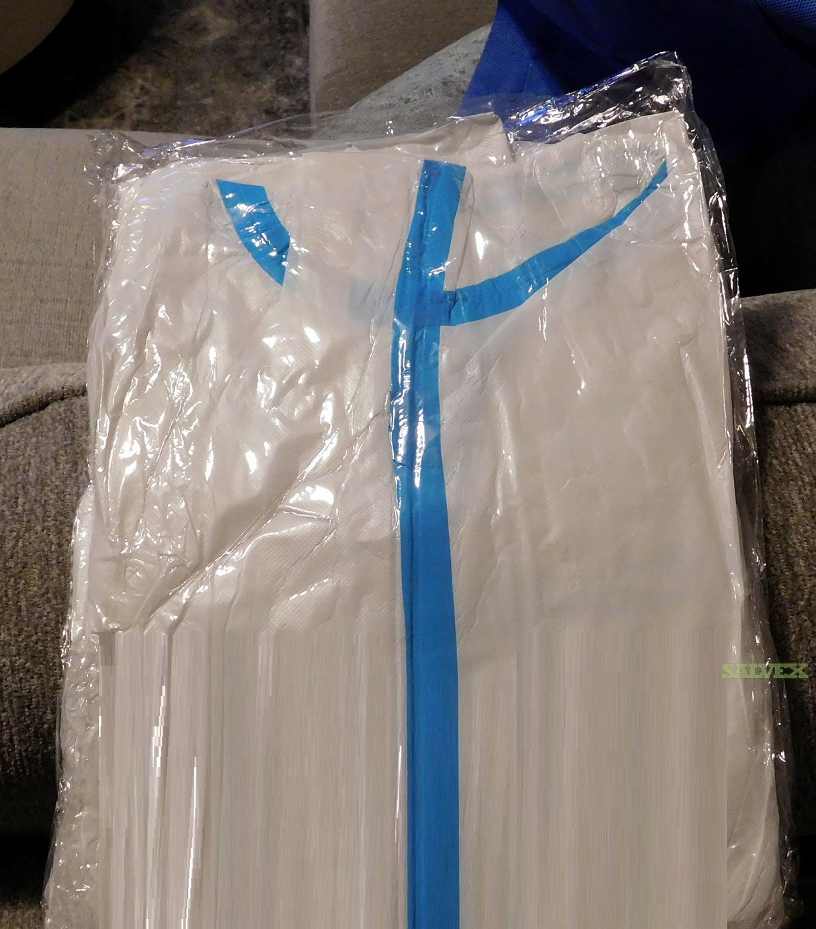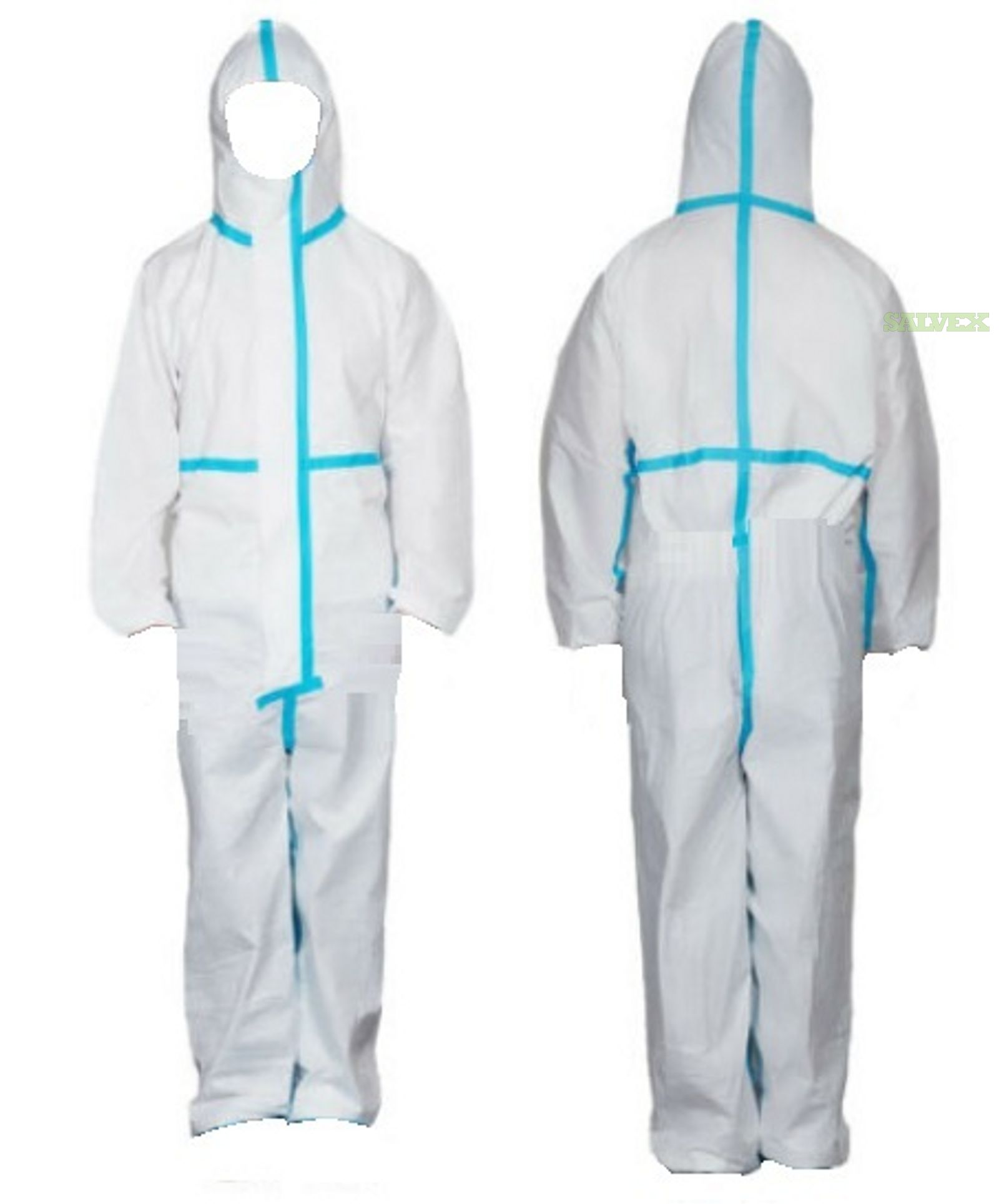 BLUE STRIPE DISPOSEABLE PROTECTIVE CLOTHING IS SUITABLE FOR THE CLINICAL MEDICAL STAFF TO WORK IN CONTACT WITH POTENTIONALLY INFECTIOUS BLOOD, BODY FLUIDS, SECRETIONS, TO PROVIDE BARRIER AND PROTECTION. PROVIDED NON-STERILE FOR SECONDARY USE. THESE ARE NEW IN INDIVIDUALLY VACUUM SEALED PACKAGES. ALSO CONSIDERED A HAZMAT SUIT.