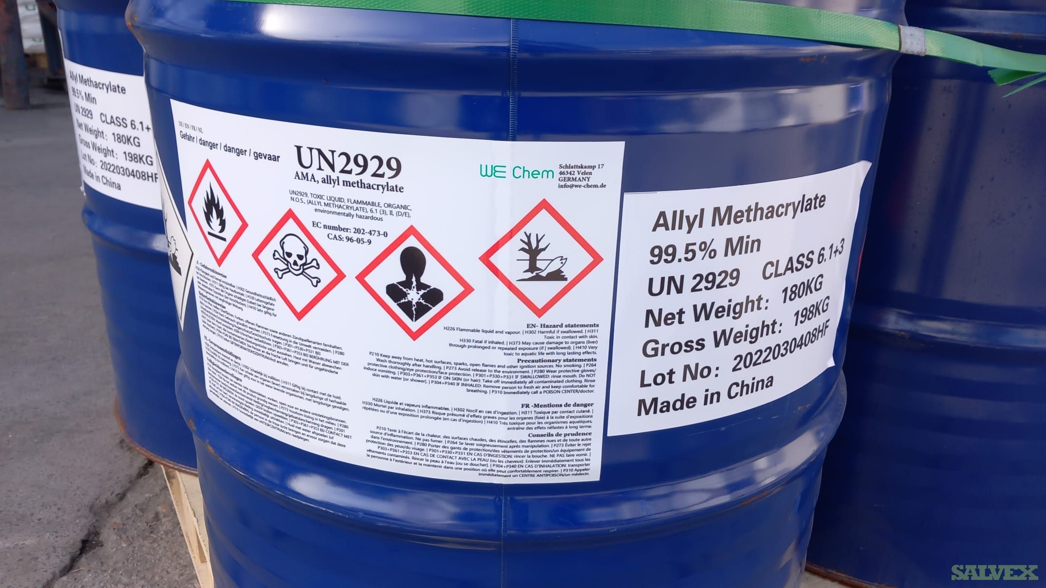 This lot of Allyl Methacrylate - AMA is no longer needed for the company's operation and is being sold as an asset liquidation for its owner.