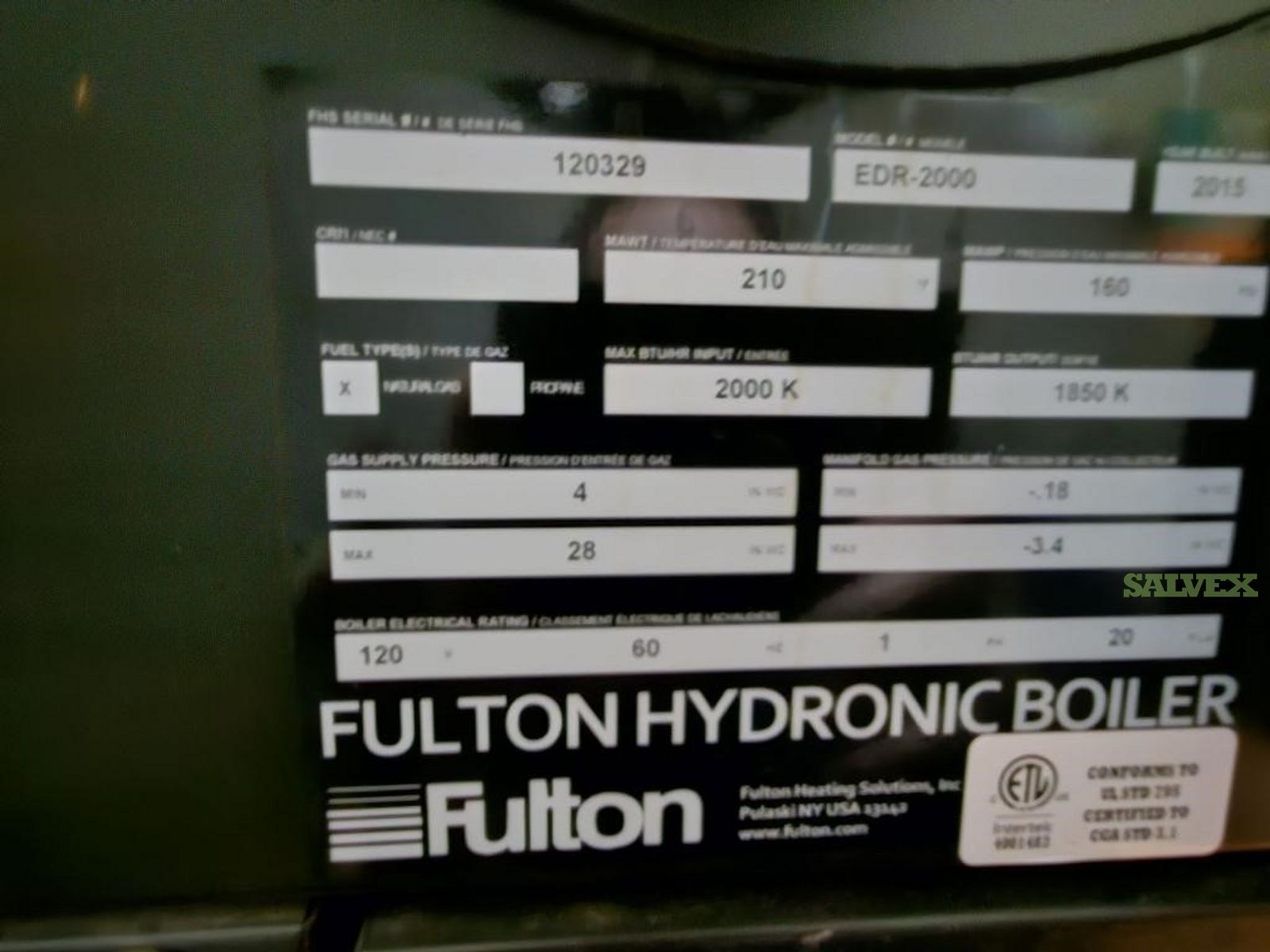 These Fulton Endura Condensing Boilers EDR-2000 (4 Units)  were removed from a demolition building and they are being sold as an asset liquidation by their owner.