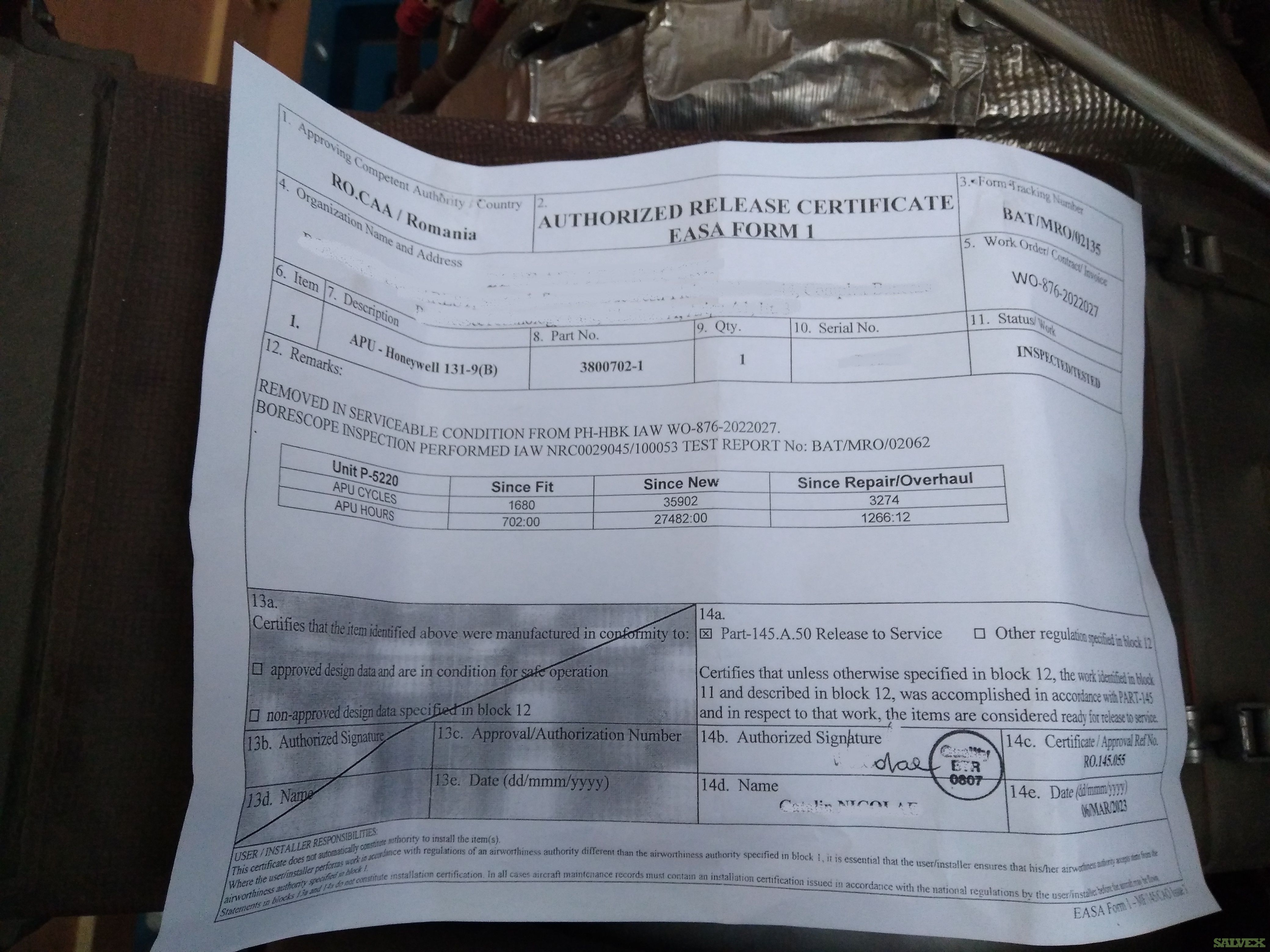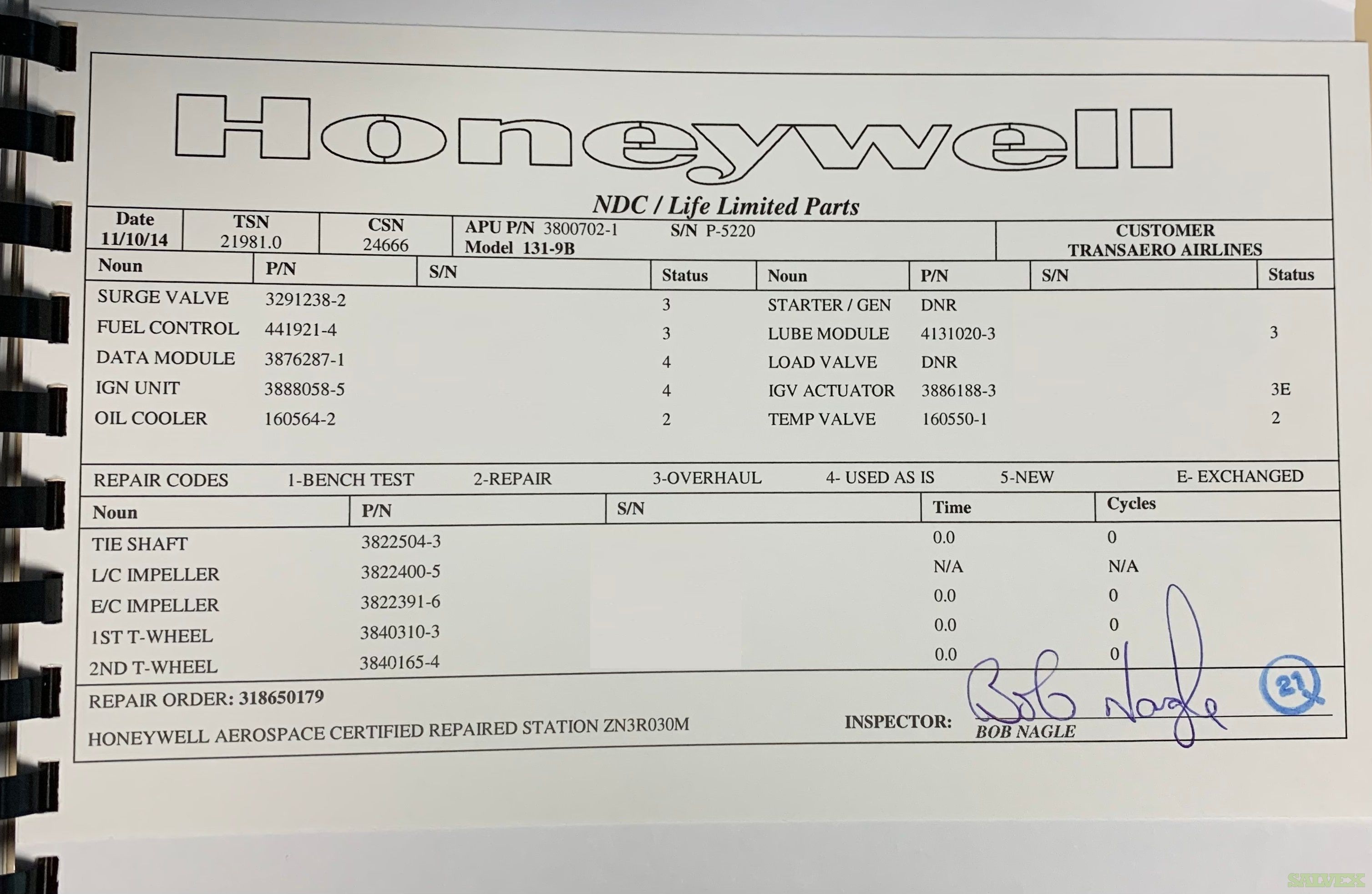 This PN: 3800702-1 Honeywell GTCP 131-9B APU is no longer needed for company's own operation and is being sold as an asset liquidation for its owner.